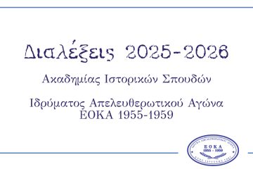 Η Ακαδημία Ιστορικών Σπουδών του Ιδρύματος Απελευθερωτικού Αγώνα ΕΟΚΑ ανακοινώνει την έναρξη του νέου κύκλου διαλέξεων για το Ακαδημαϊκό έτος 2025-2026. Πρόγραμμα: 1η Διάλεξη: Τρίτη, 14 Οκτωβρίου 2025«Η Παιδεία μας, ο ισχυρός πυλώνας της συνέχειας Read more