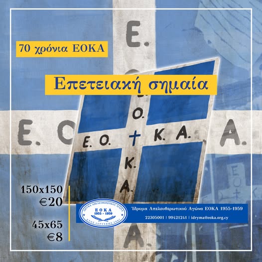 Κατόπιν πολλών αιτημάτων από άτομα που δεν παρευρέθησαν στον εορτασμό της 1ης Απριλίου, όταν 1.500 επετειακές σημαίες διανεμήθηκαν δωρεάν, αλλά και κατόπιν πολλών αιτημάτων από άτομα που θέλουν να προμηθευτούν την επετειακή σημαία σε μεγάλο μέγεθος, προχωρήσαμε σε εκτύπωση επιπλέον σημαιών, οι οποίες διατίθενται σε τιμή κόστους.